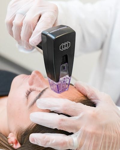 Non-invasive laser therapy to improve blood circulation and stimulate hair follicles.